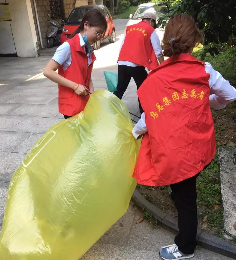5月4日下午3點(diǎn),青年員工身穿紅馬夾齊聚河畔居小區(qū),這一刻他們不再是管理人員,而是一名投身在一線的普通保潔員。