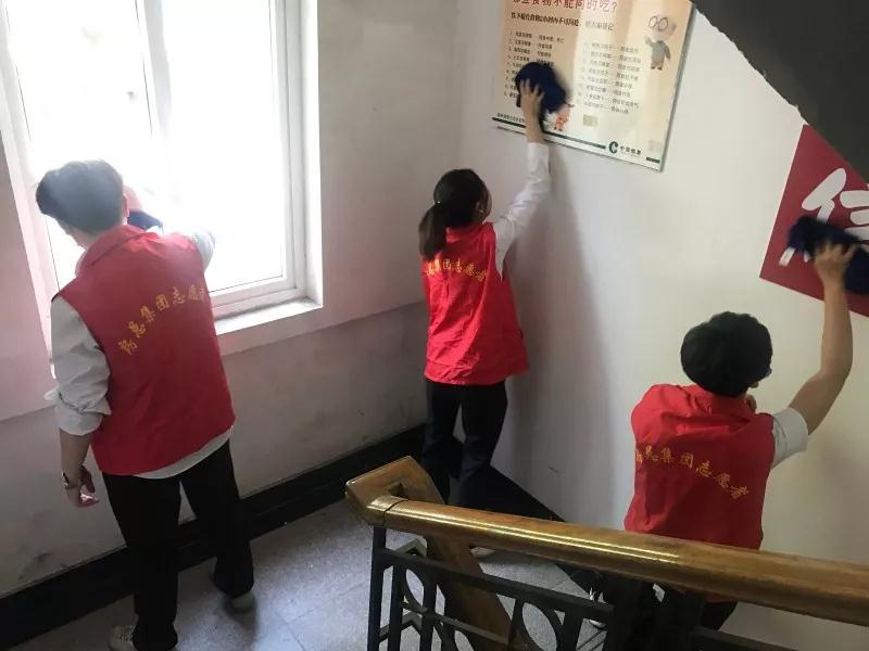 “樓道隊(duì)”穿梭于各樓道間,所到12余處的欄桿、提示牌、窗戶(hù)玻璃煥然一新。