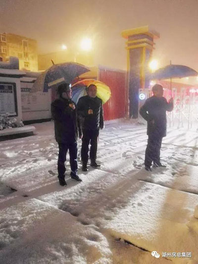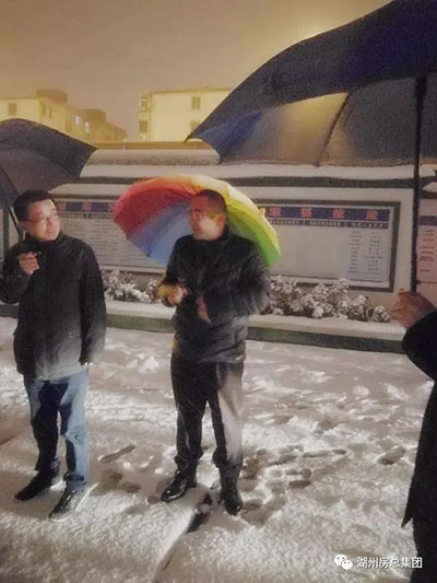1月25日晚,公司黨委書記、董事長費子明、副總經(jīng)理朱春根冒雪帶隊視察公司辦公大樓及各項目現(xiàn)場抗雪防凍值班工作。
