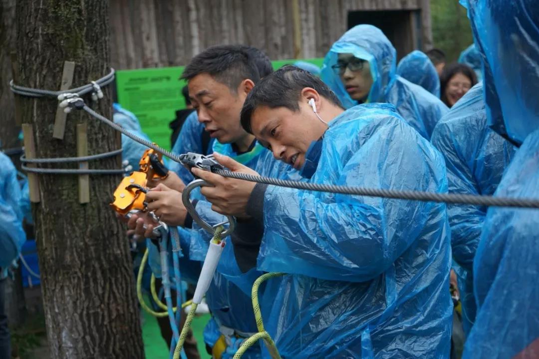 同事們各個身手矯健,在幾米高的障礙上都表現(xiàn)的從容不迫。爬繩索、速滑等都項目都留下了“房總?cè)恕庇赂业纳碛?,在下方的同事也為上面的勇士吶喊助威。每每看到在繩索、速滑上即將要滑落時,大家又都可咬咬牙堅持了下來。