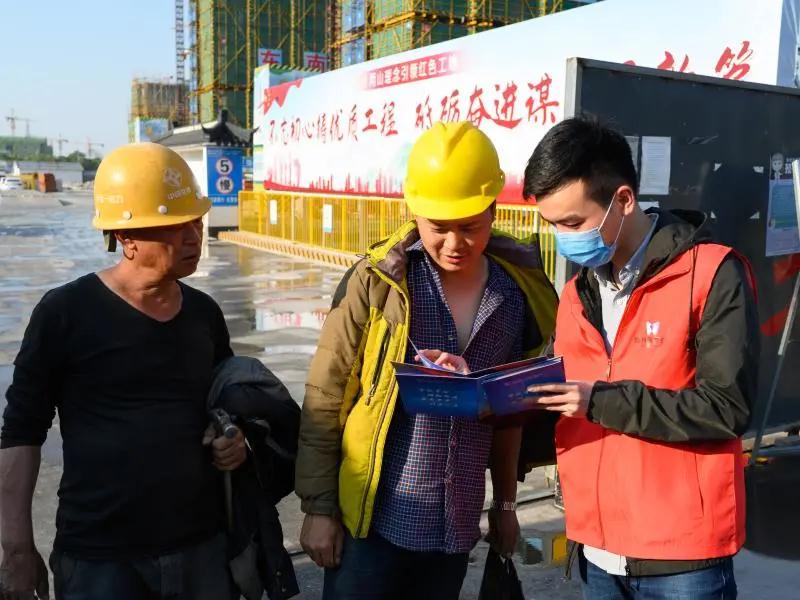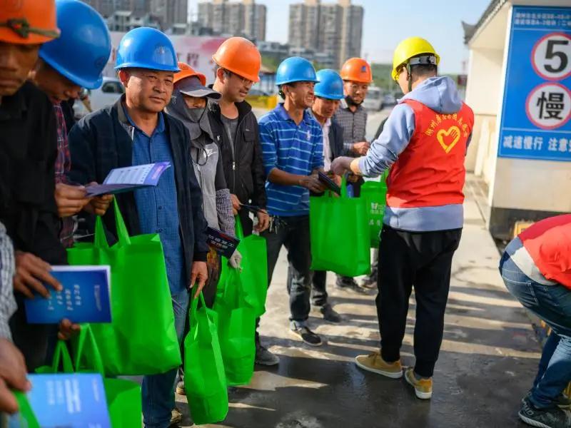 隨后,青年志愿者們現(xiàn)場發(fā)放了《防疫復工宣傳冊》和《文明施工宣傳冊》等宣傳材料,并就如何預防疾病、正確佩戴口罩、復工就餐防疫指南、文明施工、安全生產(chǎn)等知識給務工人員進行了講解,加深了務工人員對防疫知識和文明施工知識的了解。