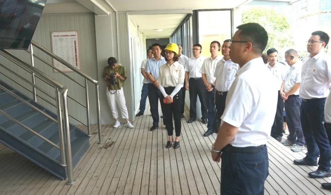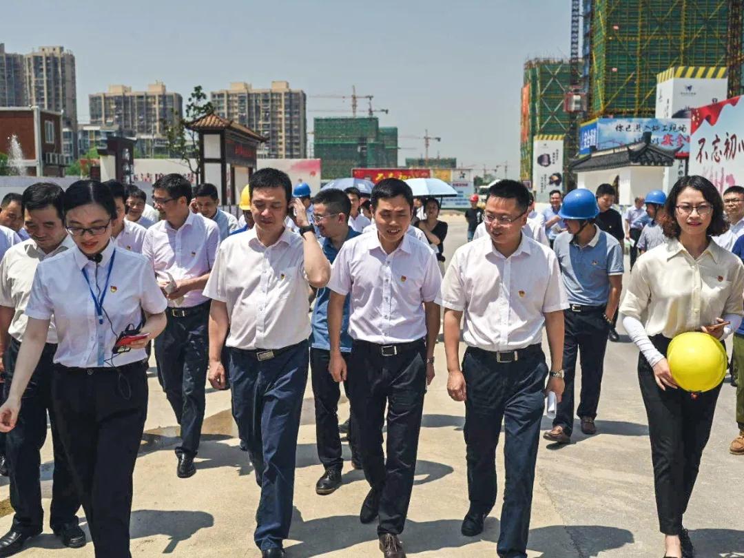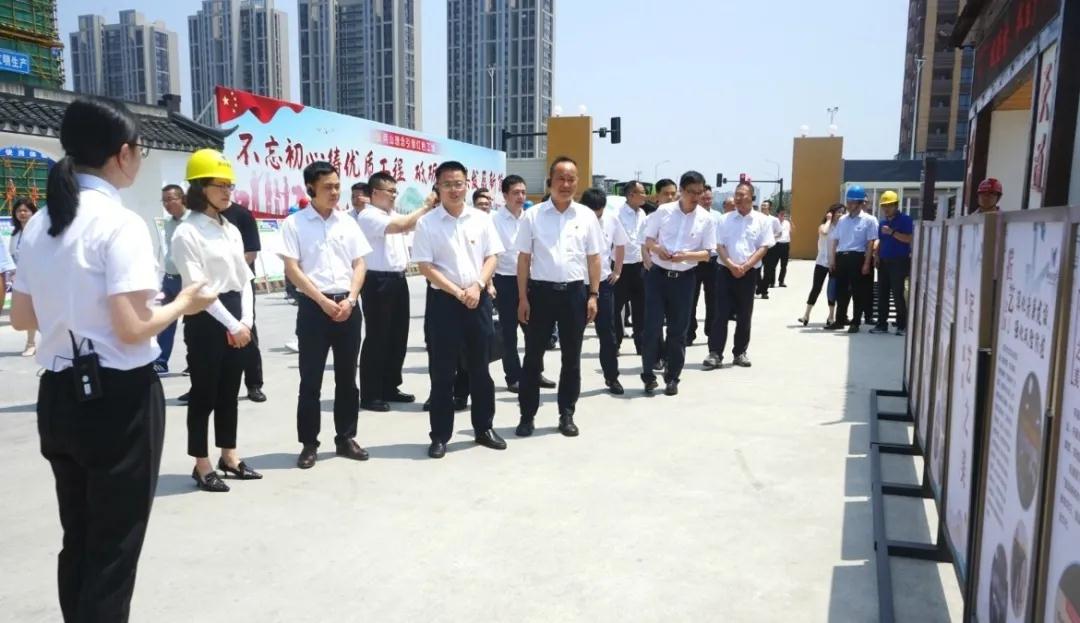 6月30日下午, 市委組織部副部長(zhǎng)沈秋,市委組織部部務(wù)會(huì)議成員、市委兩新工委專職副書記鄒冬輝,市建設(shè)局黨委委員、副局長(zhǎng)陳明法及各區(qū)縣有關(guān)領(lǐng)導(dǎo)50余人首站來(lái)到市北32號(hào)地塊,實(shí)地考察“紅色工地”建設(shè)情況。