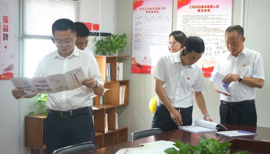 考察組一行還實(shí)地參觀了項(xiàng)目黨支部黨建工作室、黨員活動(dòng)室、紅色文化走廊,仔細(xì)翻閱“紅色工地”宣傳冊(cè)等相關(guān)臺(tái)賬資料,并認(rèn)真駐足觀看“紅色工地”建設(shè)宣傳片。觀摩結(jié)束后,考察組成員對(duì)市北32號(hào)地塊“紅色工地”建設(shè)工作給予充分肯定,并要求各承建單位要把黨建融入開(kāi)發(fā)建設(shè)的全過(guò)程”,切實(shí)提升工地黨組織戰(zhàn)斗力,為中心工作服務(wù)。