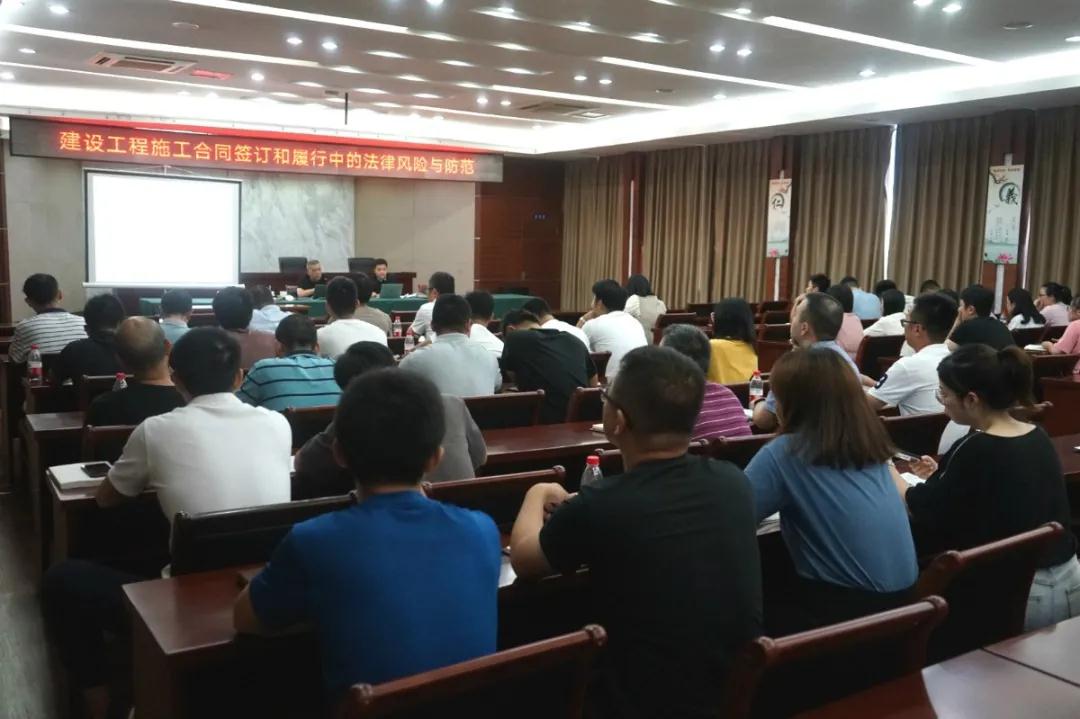 為進一步提高公司在建設工程施工合同簽訂、履行過程中法律風險的識別與防范能力,增強合同的監(jiān)管監(jiān)控力度,根據(jù)“清廉講堂”課程安排,7月30日下午,公司邀請了法律顧問舒文建就建設工程施工合同簽訂和履行中的法律風險與防范作專題講座。公司全體中層干部、營銷、財務和工程項目管理人員共計60余人參加會議。