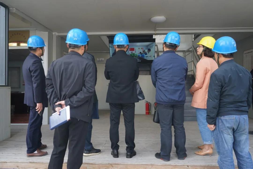 吳書記一行深入項目現(xiàn)場,仔細詢問項目概況及施工進度、質(zhì)量安全管理等工作,又參觀了項目黨支部展板陳列區(qū)、黨員工作室和黨員活動室,翻閱相關(guān)臺賬資料,駐足觀看了“紅色工地”建設(shè)宣傳片。