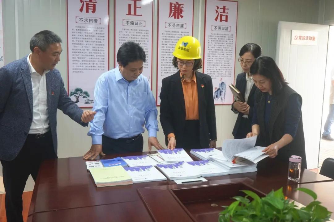 在實(shí)地查看項(xiàng)目建設(shè)進(jìn)展情況后,婁書(shū)記一行深入項(xiàng)目黨支部,聽(tīng)講解、看展板,并認(rèn)真參觀了黨建工作室、黨員活動(dòng)室、紅色文化走廊,仔細(xì)翻閱“紅色工地”宣傳冊(cè)等相關(guān)臺(tái)賬資料,駐足觀看了“紅色工地”建設(shè)宣傳片,詳細(xì)了解了公司在保障黨建工作在工地“落地生根”的各項(xiàng)創(chuàng)新舉措和項(xiàng)目黨支部在黨建管理模式及文明施工、質(zhì)量安全、技術(shù)創(chuàng)新上取得的成效。