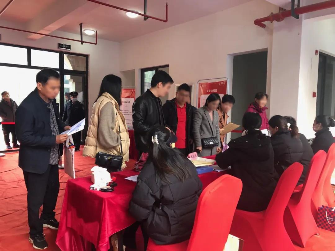 現(xiàn)場,業(yè)主們按照《交房流程圖》有序完成各項(xiàng)交房事項(xiàng),排隊(duì)檢測體溫、審核資料、繳納費(fèi)用等程序,物業(yè)和工程人員耐心介紹、解答客戶提出的各方面問題,全程陪同看房,確保每位業(yè)主都能得到最舒適的交付感受。
