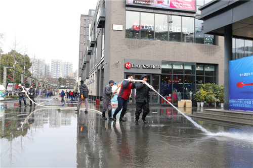 23日的凌晨整個湖州城積雪加上冰凍,仿佛進入了“慢鏡頭”模式,緩緩地開車,小心翼翼地行走。愛山廣場步行街區(qū)也被這白茫茫的一片籠罩著,雖然只是薄薄的一層,可耐不住冰凍呀!看到這樣的情況,物業(yè)服務(wù)中心的領(lǐng)導和員工們第一時間行動起來打響了道路暢通“保衛(wèi)戰(zhàn)”。在潘文哲、邢燕的帶領(lǐng)指揮下我們分成了3個組,把愛山廣場步行街內(nèi)主干道路段:人民路、紅線范圍內(nèi)公園路,志成路(北起20#車庫口南至紅旗路口),同岑路(東起人民路口西至星火7#樓北側(cè))進行包干。一大早,大伙兒就在各自的“包干區(qū)”里忙活起來。除雪、鏟冰、使用高壓水槍沖刷地面是個體力活,所以盡管室外白雪皚皚、寒風刺骨,可是不少員工們的額頭上還是冒出了汗珠,直到早上十點鐘多,終于把三條主干道的積雪及薄冰鏟除干凈,大伙懸著的心放下了。