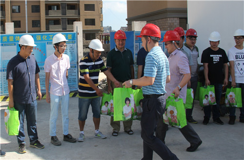 連日來的高溫酷暑牽動(dòng)著城市集團(tuán)領(lǐng)導(dǎo)的心。8月1日,市城市集團(tuán)有限公司總經(jīng)理王建民、副總經(jīng)理沈宏明、王鵬在公司領(lǐng)導(dǎo)的陪同下,冒著酷暑來到公司所屬的金田家園項(xiàng)目部,親切慰問了高溫下辛勤工作的一線干部職工,并向奮戰(zhàn)在工程一線的職工們送來了防暑降溫用品,讓職工們?cè)诳崾钍⑾睦锔惺艿搅藳鏊?