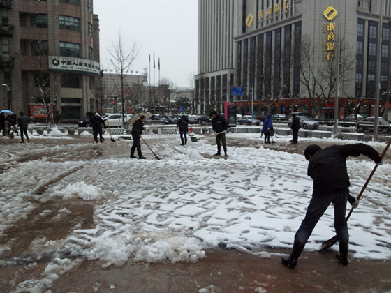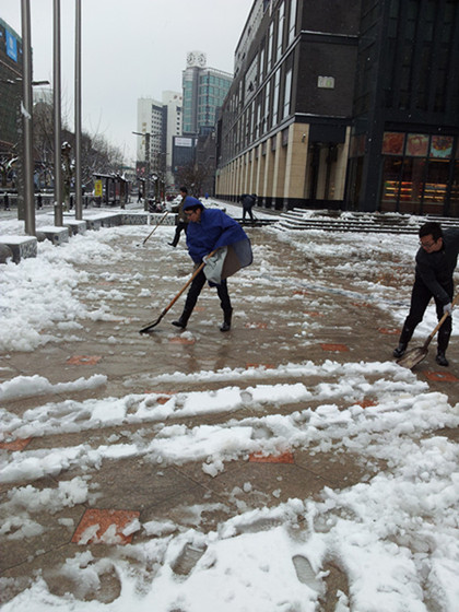 年前下了兩場大雪,愛山廣場路面積雪給通行帶來了極大的不便,也影響了周邊店鋪正常營業(yè)。公司團(tuán)委兩次組織青年團(tuán)員掃雪鏟冰。大家冒著風(fēng)雪,不顧嚴(yán)寒迅速開動,趕在路面凍結(jié)以前將積雪清除,現(xiàn)場呈現(xiàn)出一派熱火朝天的景象。在幾個(gè)小時(shí)的共同努力下,愛山廣場的一些主要路面得到了清掃,保障了車輛順利通行,方便了行人安全出行,同時(shí)也為商業(yè)街區(qū)的正常營業(yè)提供了良好的環(huán)境。