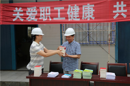 7月23日,市建設(shè)局工會(huì)組織的“送法律進(jìn)工地,送關(guān)愛(ài)惠民工”活動(dòng)在我金田家園工地全面展開,本次活動(dòng)的主要內(nèi)容是一送法律:局工會(huì)盧美月副主任向一線民工贈(zèng)送《工會(huì)法》、《勞動(dòng)法》、《勞動(dòng)合同法》、《安全生產(chǎn)法》等職工普法書籍。并邀市總權(quán)保部有關(guān)人員進(jìn)行《工會(huì)法》、《勞動(dòng)法》“兩法”的現(xiàn)場(chǎng)咨詢;二送關(guān)愛(ài):邀請(qǐng)市疾控中心醫(yī)護(hù)人員到工地為民工測(cè)量了血壓,針對(duì)健康安全保護(hù)提出了有益的忠告和建議。同時(shí)還為民工贈(zèng)送3D電影票,在炎熱的夏季及時(shí)給一線民工送上精神食糧。